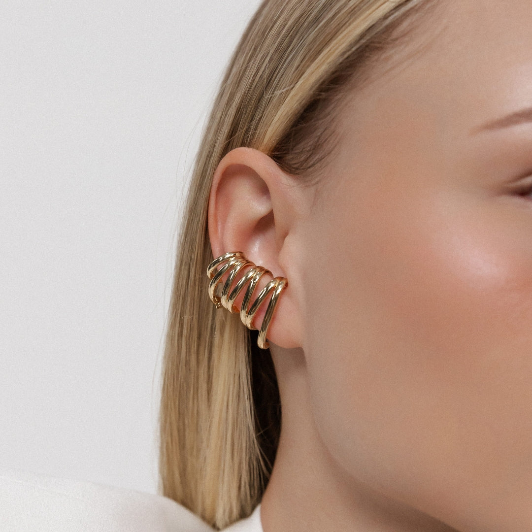 Brinco Ear Cuff Orgânico Liso Banhado a Ouro 18K
