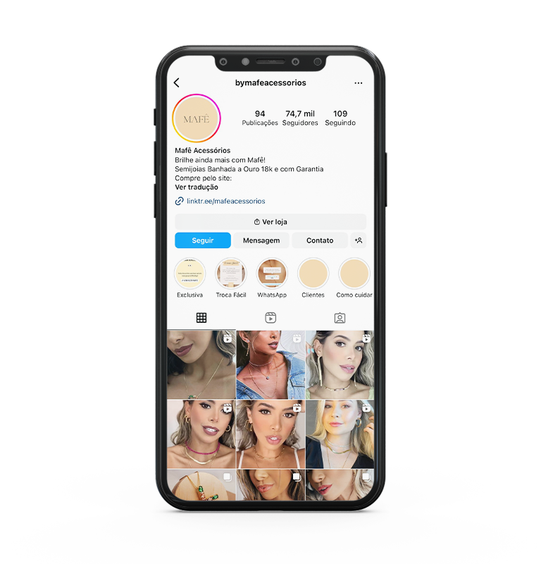 O propósito da Mafê é encantar e surpreender as clientes entregando mais do que a semijoia. Investimos na cliente toda a experiência de cuidado de imagem. Nosso propósito é fazê-las sentir que são a nossa maior joia.
